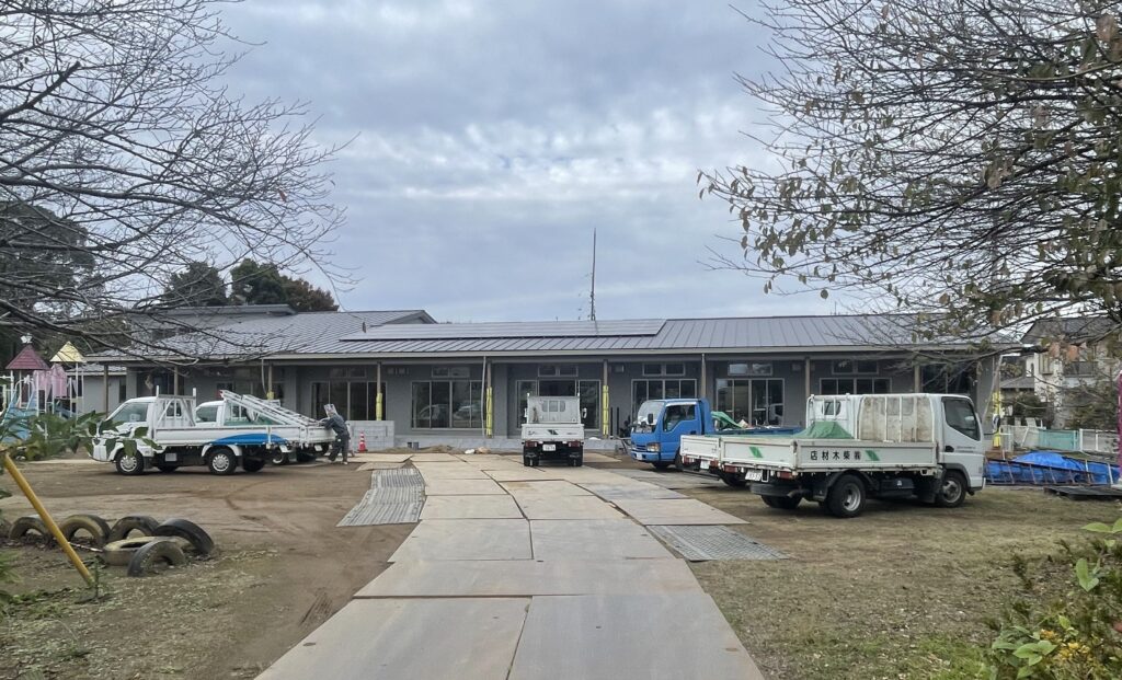 工事はいよいよ最終段階へ。建物の工事が完了し、外構工事が着実に進んでいます。完成に向けて現場の仕上げを丁寧に進めています。