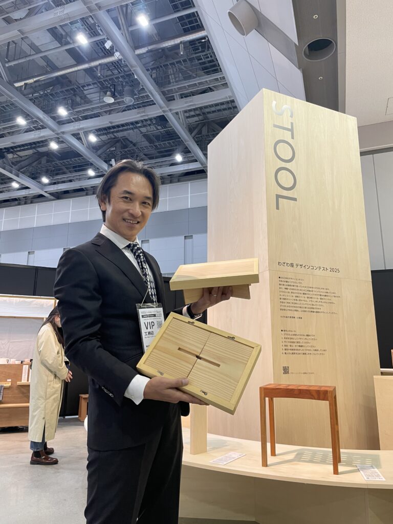 東京ビッグサイトで開催された「ジャパンホームショー2025」にて、今年も「わざわ座デザインコンテスト」の展示が行われました。