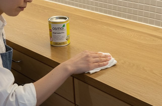 厚塗りはベタつきの原因となったり、塗料が木にうまく浸透しなかったりします。「薄く、均一に」塗ることを意識していただくのが、美しい仕上がりの鍵となります。塗布後、すぐに乾いた布で余分な油分をしっかりと拭き取ります。この作業を丁寧に行うことで、ムラのない仕上がりになります。拭き取り後は、風通しの良い場所で半日ほど乾燥させれば完了です。