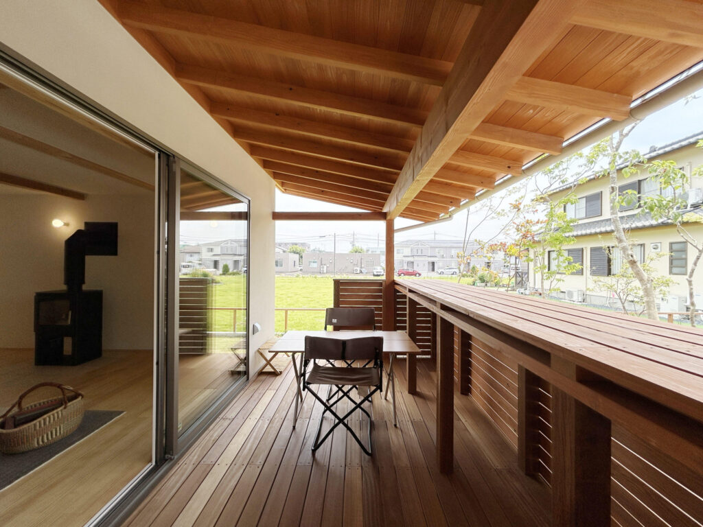 実は、この「深い軒」には、ウッドデッキを雨や直射日光から守るという大切な役割もあります。