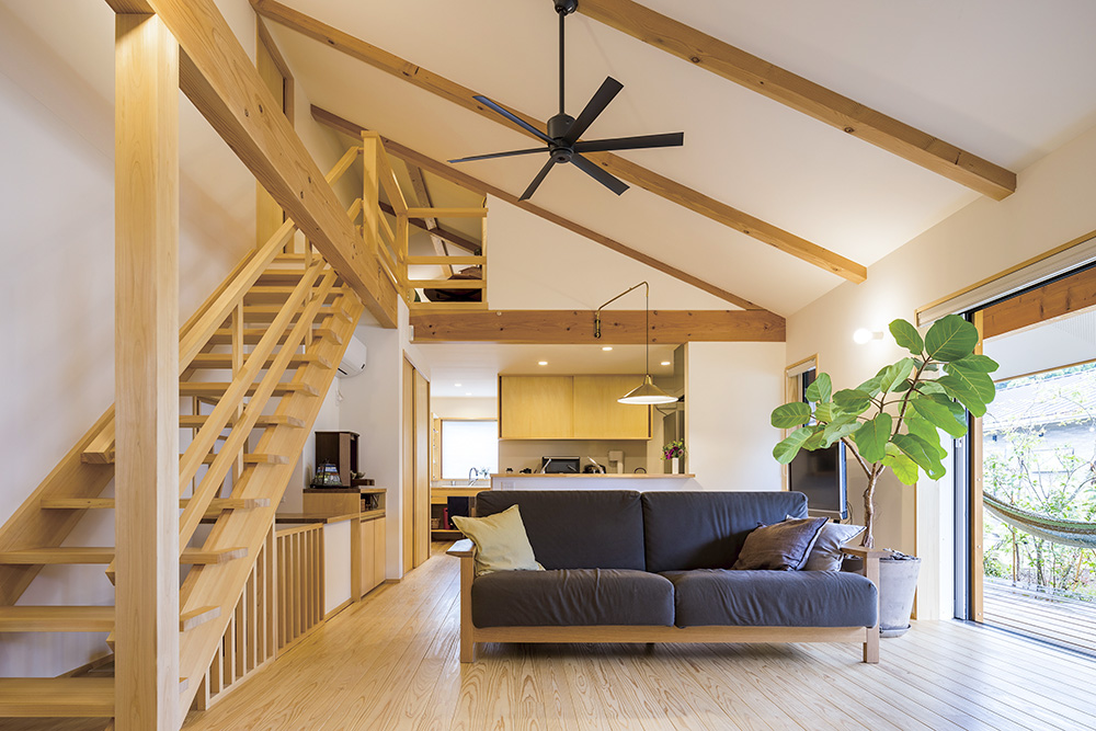 大屋根の下、家族の笑い声が響くリビング。 私たちが目指したのは、 ライフステージが変わっても、ずっと愛着の続く住まいです。